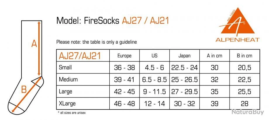 Les chaussettes chauffantes de ALPENHEAT offrent grande confort et de pieds chauds. L’elément chauffant se trouve sous les doigts et fonctionne avec une petite batterie. Les chaussettes sont disponable en 4 tailles. La durée de chauffe est 8 heures.