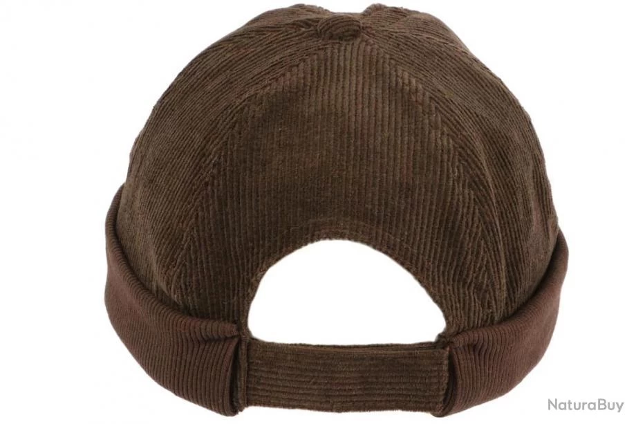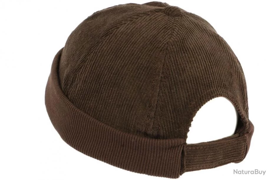 Choisir un bonnet docker marron en velours tradition et classe référence Hodack Brown proposé par Léon Montane, bonnet court marron homme et femme avec scratch de réglage de taille, bonnet marin velours en coton qualité chapelière.