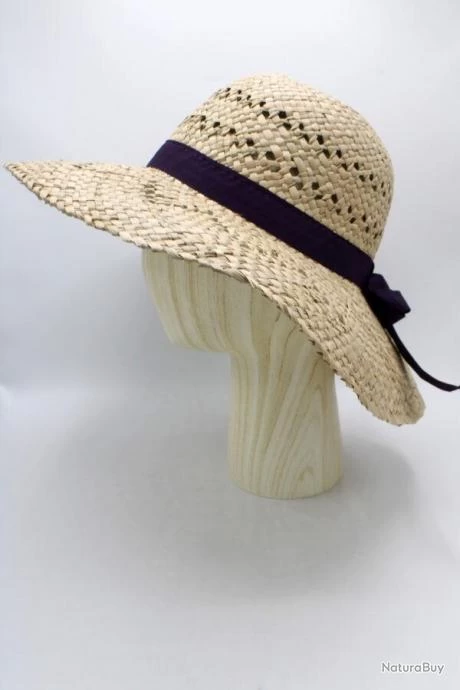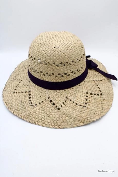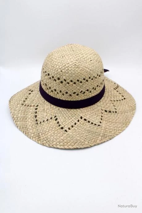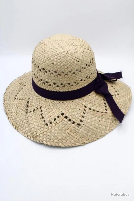 Chapeau de paille à large bord cerclé d’un ruban de tissu
