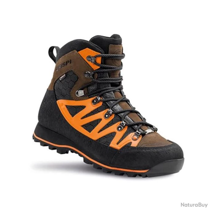voici leur évolution. Evolution esthétique tout d’abord avec des inserts en cuir brun du plus bel effet qui les intègre mieux dans leur destination chasse. Et évolution technique avec la technologie WFW, structure externe qui permet d’alléger encore la chaussure , une tenue anatomique avec le système de laçage “Wrapping Fastening System” et un amortissement amélioré grâce au mélange Megagrip. Les Chaussures Crispi Ascent EVO sont spécialement conçues pour le début de saison, les longues randonnées et plaine ou moyenne montagne.