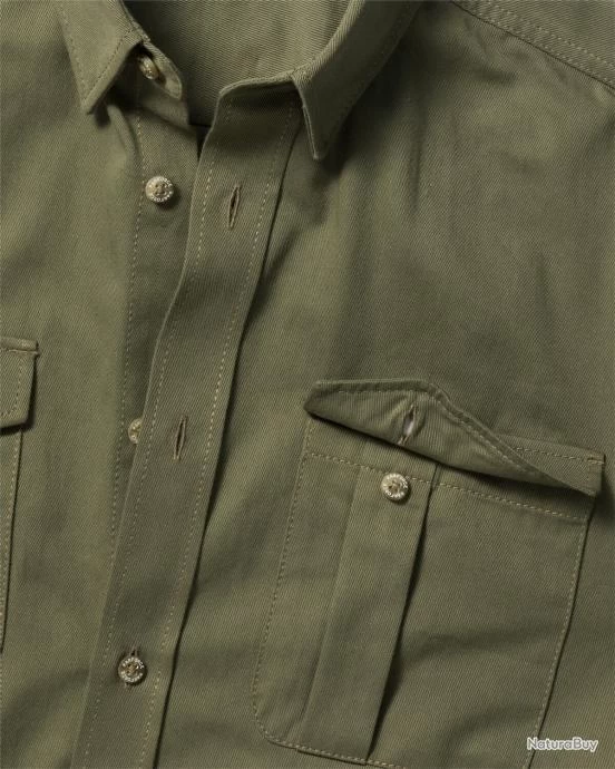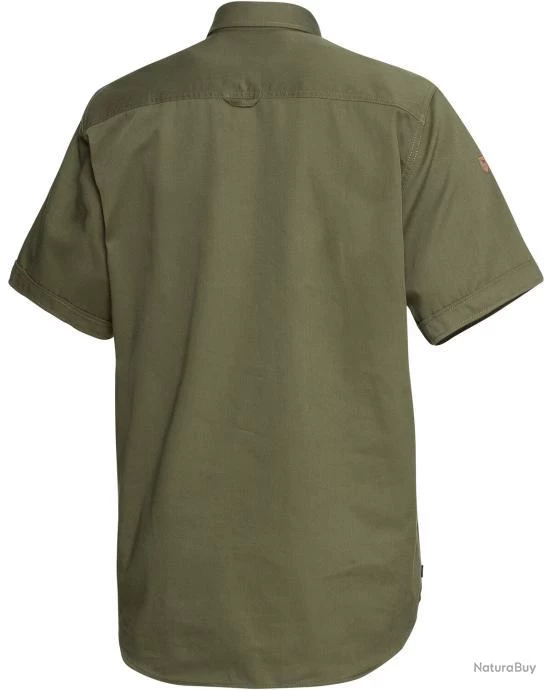 Chemise de chasse Parforce durable à manches courtes, de couleur olive en pur coton doux pour la peau. Deux poches spacieuses à rabat sur la poitrine offrant un espace de rangement pour les ustensiles les plus essentiels.