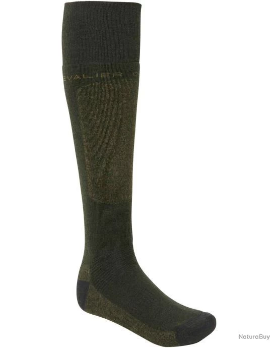 Semelle, talon et zone de tibia sont renforcés et empêchent les points de pression par des bottes hautes. Zones côtelées tricotées élastique sur le pied et la cheville assurent un bon ajustement. Logo Chevalier intégrés au tricot.