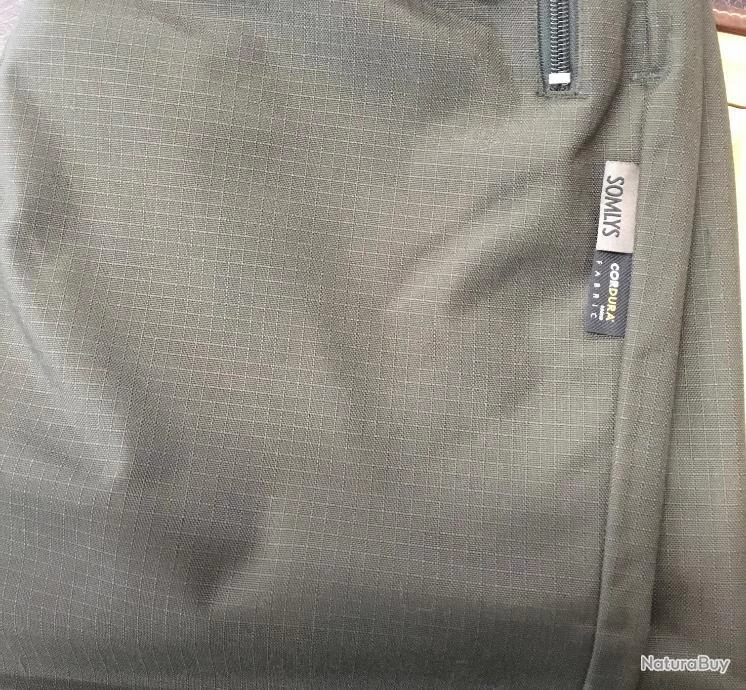 -Couleur kaki, il est ultra-résistant à l’abrasion, imperméable et doublé devant d’une couche de polyester oxford anti-ronce et imperméable.