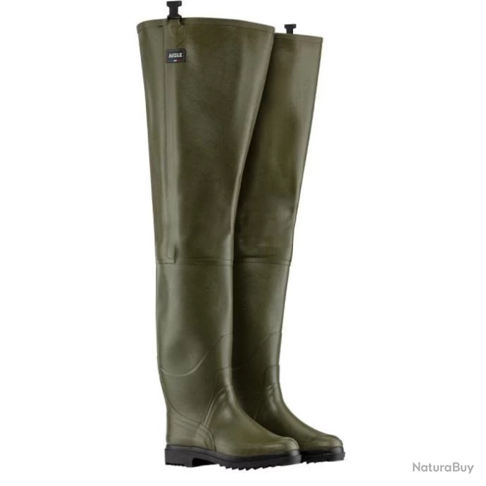 Conçue pour la pêche, la cuissarde Truite en caoutchouc de chez Aigle est confortable et polyvalente