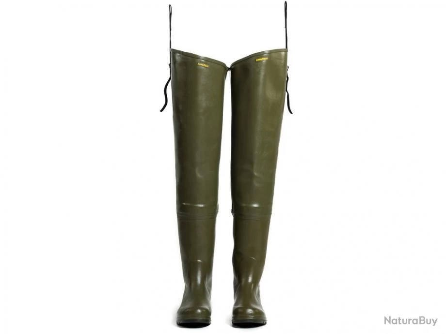 Les cuissardes Goodyear caoutchouc C-Rub de couleur kaki sont idéales pour la pêche sportive ou professionnelle ou d’autres activités.