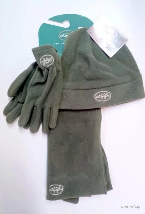 Pack Polaire Le Chameau composé d’un bonnet, d’une écharpe et d’une paire de gants.