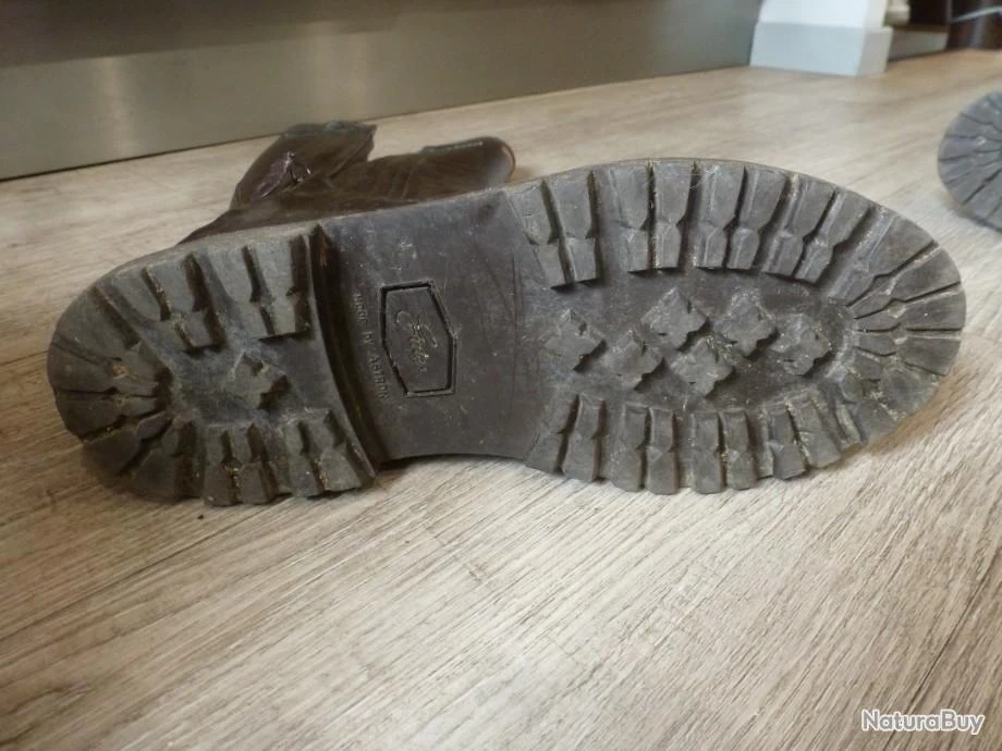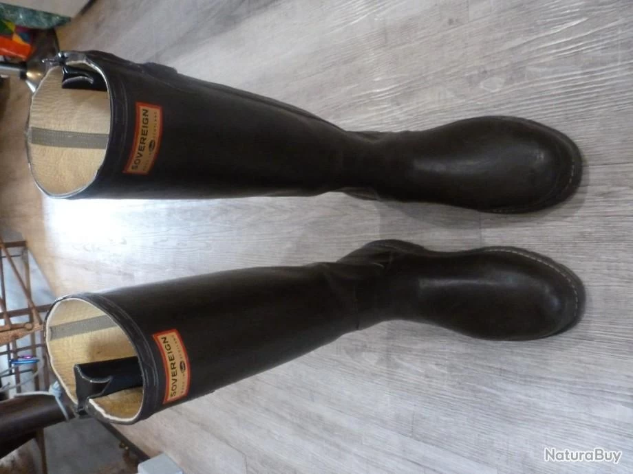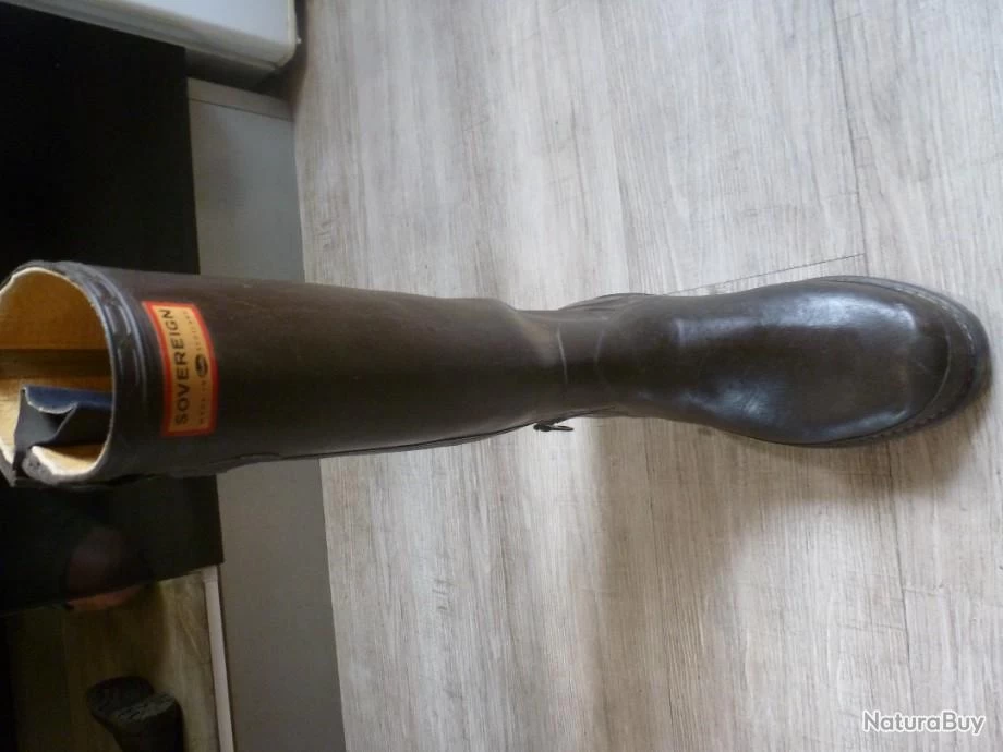 Botte de chasse Sovereign made in Scotland taille 43 intérieur cuir très peu servi en très bon état . J’ai supprimé la petite languette sur le côté , ça géné plus qu’aute chose .