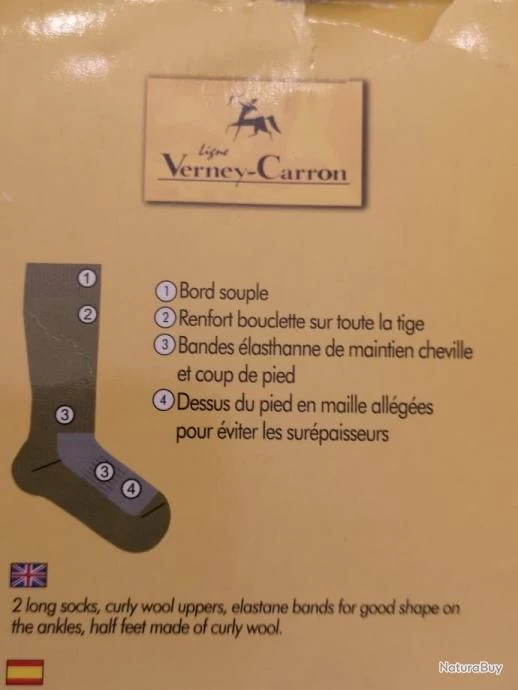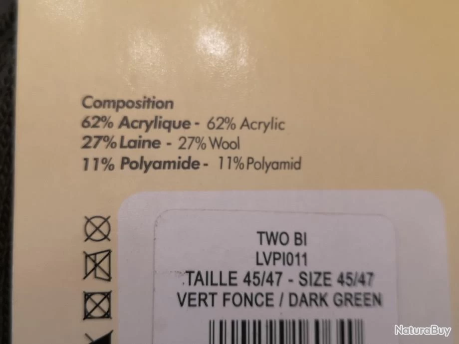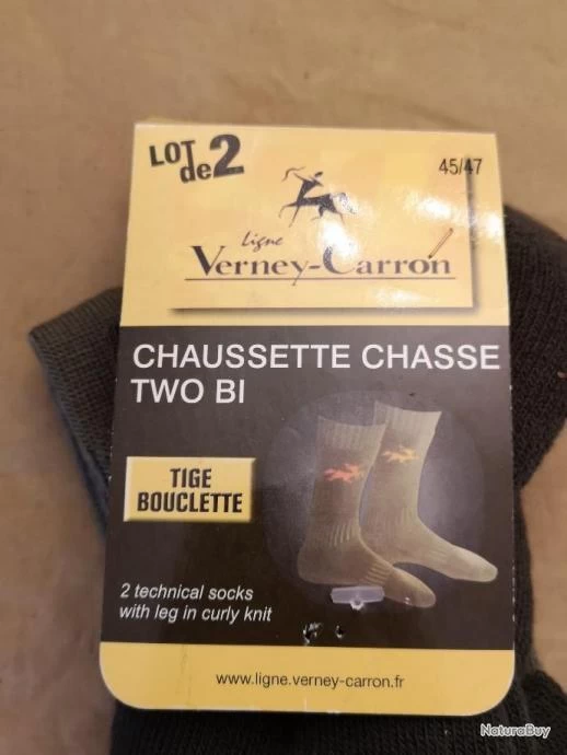 Lot de 2 paires de chaussettes de chasse de marque VERNEY CARRON. paire vert foncé et 1 paire plus claire, taille 45-47.