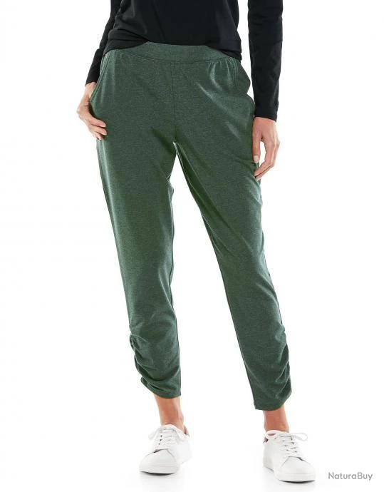 Prenez un air sage et sentez-vous bien dans ce pantalon vert olive décontracté de Coolibar. Il est parfait pour les voyages, les week-ends, les courses, la randonnée et même la sieste ! Vous allez adorer sa coupe décontractée, ses poches avant généreuses et son super doux tissu ZnO┢ avec protection UPF50+ qui frôle votre peau. Ce pantalon est confortable, mais fait facilement monter d’un cran votre look décontracté grâce au détail élégant des fronces au niveau des coutures latérales inférieures.
