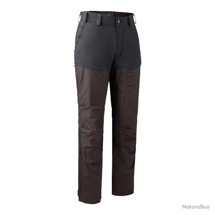 Notre pantalon Strike résiste aussi bien à l’eau qu’à la saleté grâce au traitement Teflon Shield. Conçu pour les chasseurs actifs et la vie en plein air ; transporter les objets indispensables au quotidien n’a jamais été aussi facile avec deux poches avant intégrées, des poches cuisses avec plis creux et fermeture éclair invisible qui offre une protection supplémentaire à votre équipement. Avec des zones quadri-extensibles et des genoux préformés, ce pantalon offre une souplesse maximale et une plus grande liberté de mouvement. Cette conception et cette coupe confort sont complétés par une ceinture élastique et une cheville réglable avec sangle et Velcro.