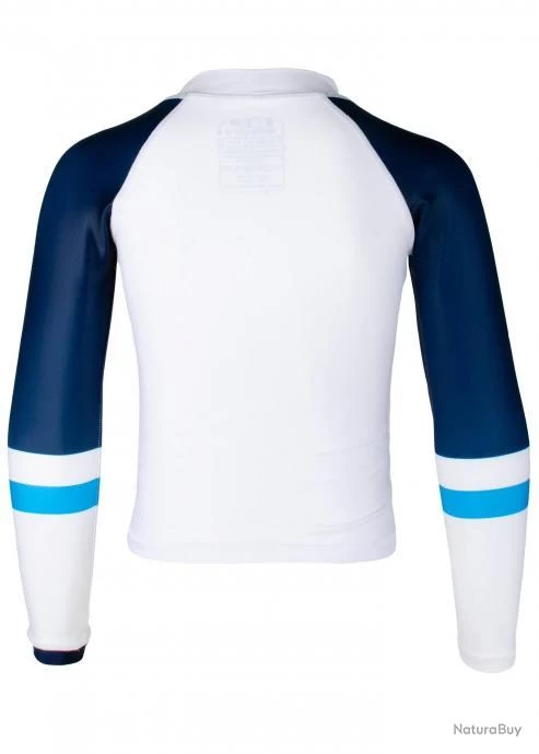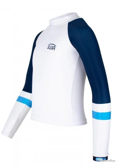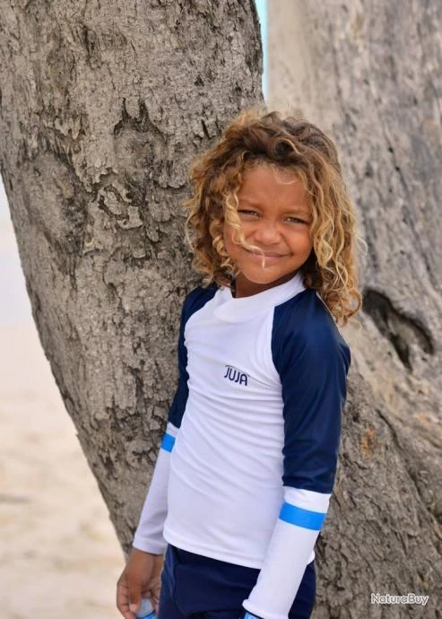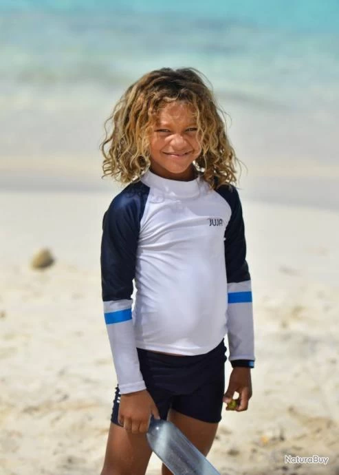 Avec ce T-shirt anti-UV blanc de JUJA, de la marque néerlandaise de vêtements anti-UV, même les plus petits peuvent profiter du soleil, de la plage et de la mer tranquillement et de façon protégée. Le T-shirt est blanc à manches longues. Sur la poitrine, le logo caractéristique de JUJA. Le T-shirt protège le ventre, les épaules, le dos et les bras des effets nocifs que peut avoir le soleil sur la peau. N’oubliez pas d’appliquer de la crème solaire sur les parties du corps non couvertes ! Le T-shirt est conçu à partir d’une matière polyester extensible à sèchage rapide. Elle est confortable à porter et n’irrite pas la peau. Ce qui rend cette matière si particulière, c’est qu’elle est fabriquée à partir de bouteilles PET recyclées. Avec une protection UPF 50+, la combinaison anti-UV bloque jusqu’à 98 % des rayons UV nocifs, de sorte que la peau couverte par le tissu n’a pas besoin de crème solaire. Le T-shirt anti-UV a un col rond. A propos de JUJA : JUJA est la marque haut gamme néerlandaise de vêtements anti-UV, qui privilégie non seulement ; la prévention des effets nocifs du soleil, mais aussi la durabilité de sa matière première. JUJA a été lancée par Jan Willem van der Sterre. Il est le propriétaire d’UV-Fashions, le plus grand distributeur européen de vêtements et accessoires anti-UV. Depuis qu’il a perdu son père à cause d’un cancer de la peau, il s’est donné une mission importante : éradiquer cette terrible maladie, car le nombre de patients atteints de cancer de la peau continue d’augmenter. Le nom de la jeune marque ‘Juja’ signifie Julia et James, la fille et le fils de Jan Willem. Il vise à protéger non seulement les siens, mais tous les enfants contre les rayons UV nocifs pour réduire le risque de cancer de la peau. Juja veut faire une différence dans le monde des vêtements de protection UV. Tous les vêtements Juja sont garanti UPF 50+ et bloquent plus de 98% des rayons UV. Les designs minimalistes mettent la qualité et la praticité en avant tout en fournissant un look intemporel et à la mode. Protégez votre enfant du soleil avec les vêtements anti UV Juja ! Les vêtements et accessoires lancés sur le marché par JUJA sont fabriqués à partir de bouteilles PET recyclées. Du plastique qui aurait probablement fini dans la rue ou dans l’océan. Avec les vêtements anti-UV de JUJA, vous protégez vos enfants des effets nocifs que peut avoir le soleil (à long terme) et vous contribuez également à un monde plus propre et plus durable. Des millions de bouteilles PET flottent dans nos océans et nos mers. Le plastique se détériore lentement en petits morceaux et ne se “décomposera” jamais entièrement et finira mangé par les poissons, les tortues et d’autres animaux (marins), avec toutes les conséquences que cela implique.