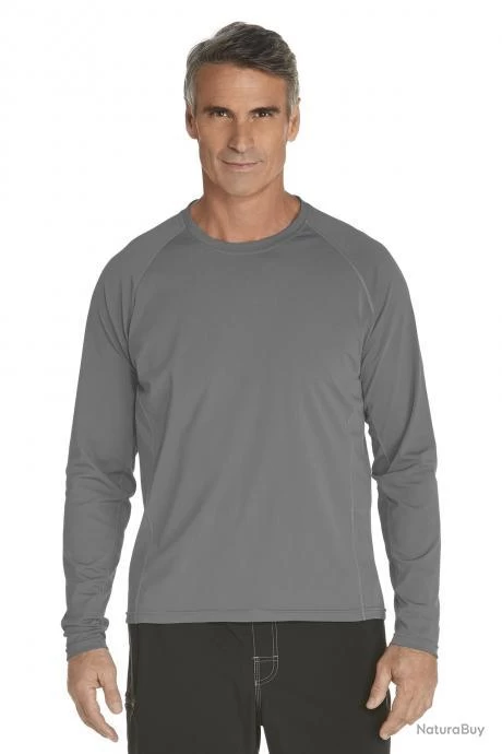 Coolibar, T-Shirt Manches Longues anti Uv pour Hommes – GrisConnu en Australie pour éviter les éruptions cutannées, ce type de maillot anti uv a tout d’abord été développé autour de la grande barrière de Corail, où le soleil est très intense. Ce t-shirt de bain manche courte est confortable car non près du corps. Le tissu est résistant au chlore et à l’eau salé, saison après saison. Doux, léger, grâce à la technologie SUNTECT. Gradué UPF 50+.