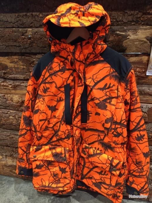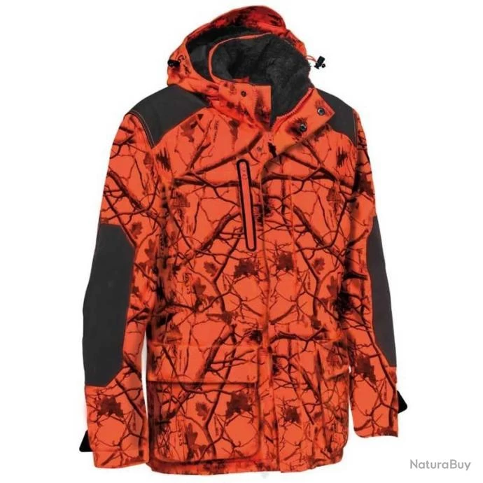 Elle présente le motif camouflage orange blaze haute visibilité, très recherché pour les chasses collectives.