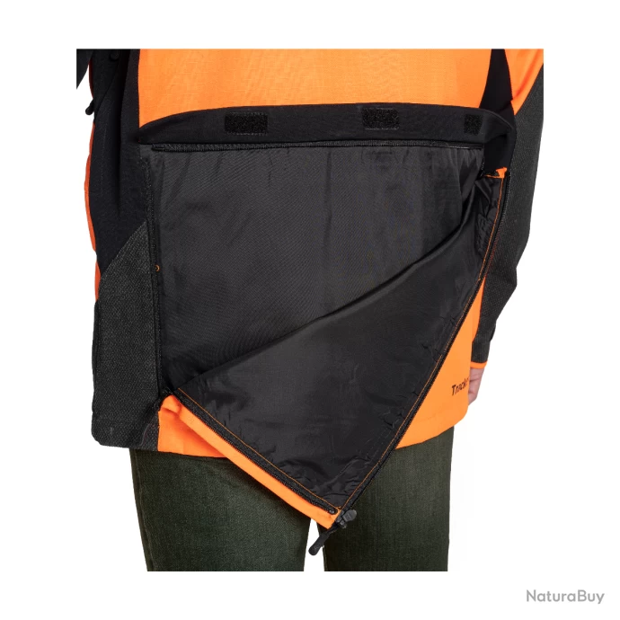 Cette veste de traque possède de nombreuses poches dont une grande poche carnier dans le dos, deux grandes poches latérales et deux poches radio avec ouverture poitrine et épaule avec passage d’antenne.