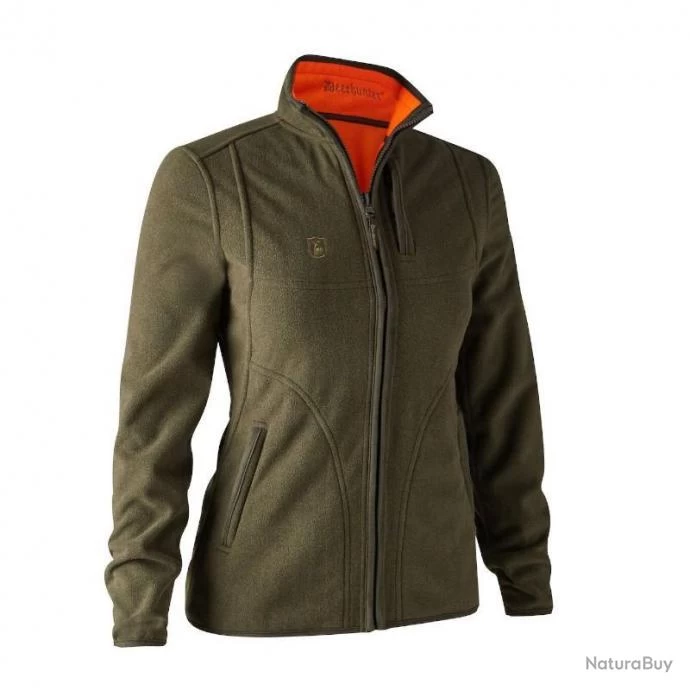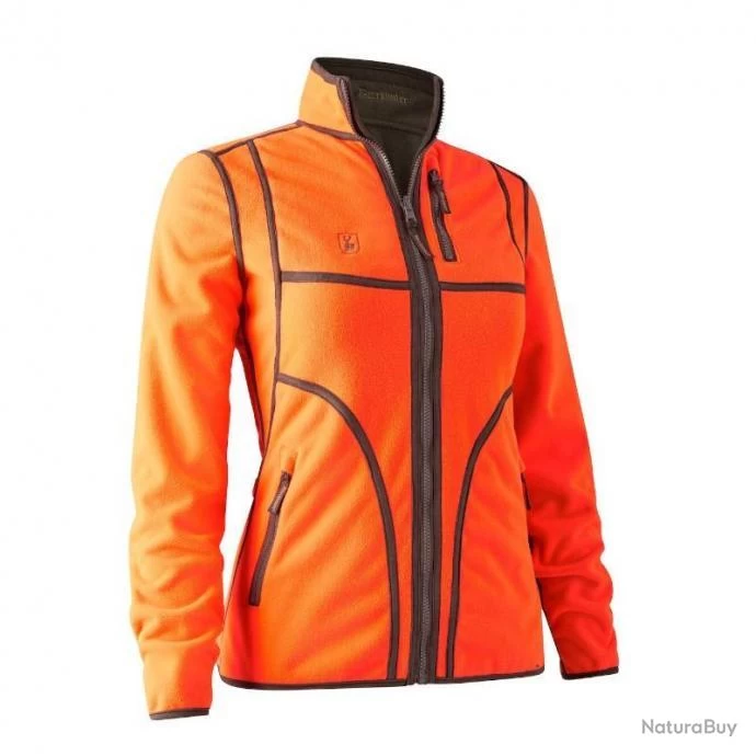 La veste molletonnée Pam de Deerhunter, en plus de vous tenir chaud lors des froideurs hivernales est réversible en orange pour vous offrir un haut de degré de visibilité lors de vos battues en forêt ou lorsque vous serez postée.