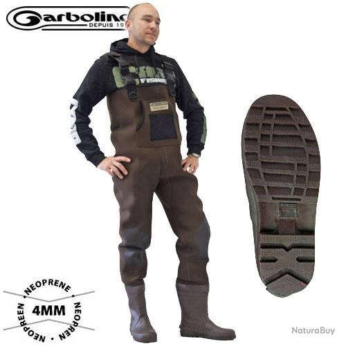 Waders en néoprène d’une épaisseur de 4mm garantissant une isolation thermique parfaite.